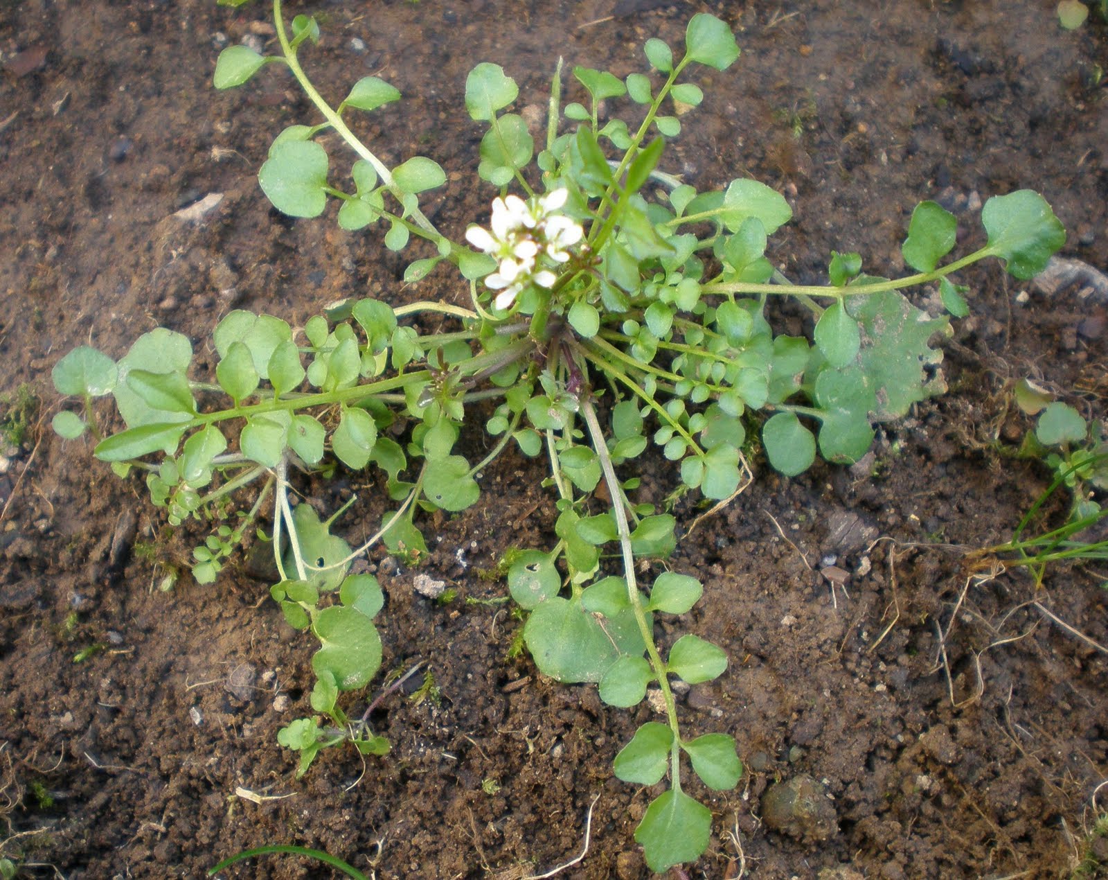 Bittercress is one of the first broadleaf weeds to appear in PA lawns during early spring. A member of the mustard family (Cruciferae), it can act as a winter or summer annual, or as a biennial. This weed can overwinter in a vegetative state, or it can germinate from seed during cool, moist conditions. Bittercress is a prolific seed producer, and can produce several generations during a single growing season. Identification features include a rosette of pinnately-compound leaves, with a terminal leaflet. Seedheads are erect, branching, and produce small (1/4 – 1/2 inch) white flowers at the ends of stems. After petals drop, long (1 inch), narrow pods form, and abruptly dehisce, shooting seeds two to three feet from the pod. Bittercress can be controlled with most conventional broadleaf herbicide mixtures.